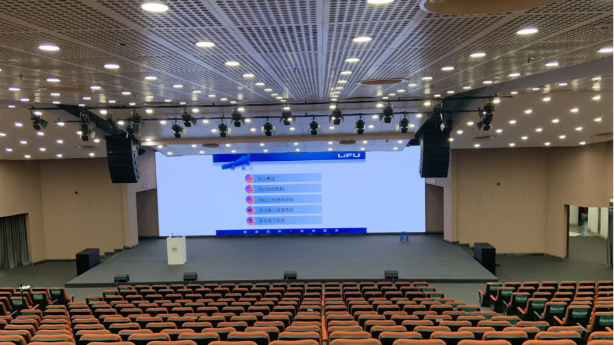 - 灯光与显示系统:搭建专业舞台灯光系统,可灵活切换会议模式与展演模式,兼顾高亮度、无频闪的会议需求与绚烂灵动的展演需求;配备高清大屏,支持4K高清显示,色彩还原度高,适配艺术作品展示、PPT讲解、视频播放等场景,保障视觉呈现效果。