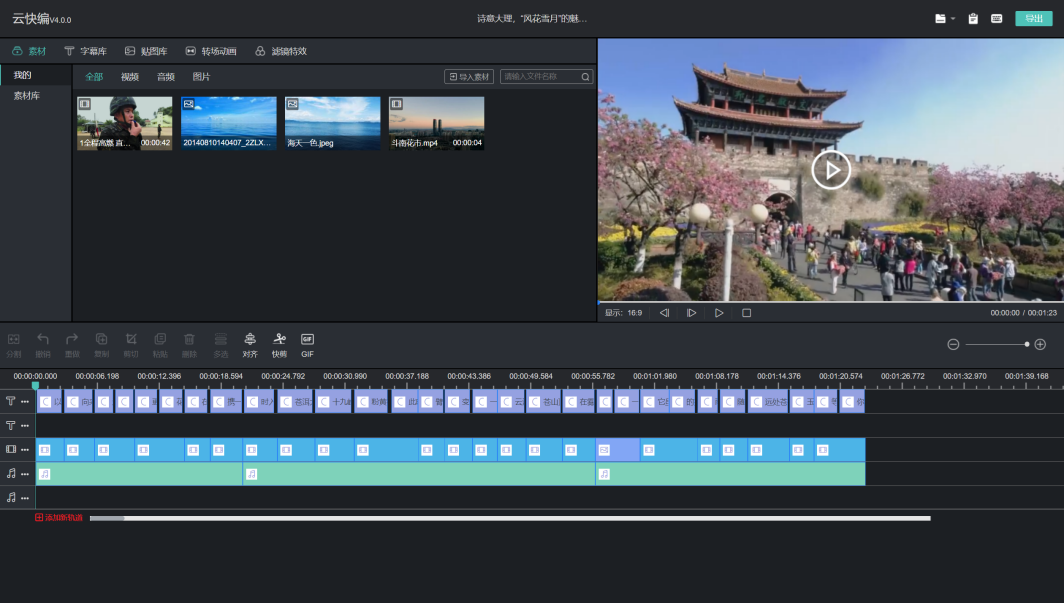 路视频轨,不限文字轨、不限音频轨多轨编辑