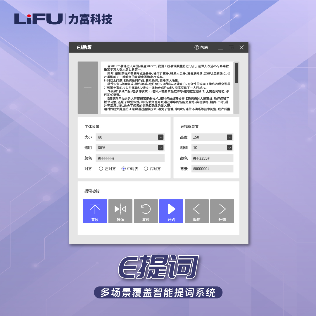 帮助用户提高工作效率和自信心。演讲者或录制者可以通过准备好的提词减少记忆负担,更好地专注于与观众的互动和传递知识。