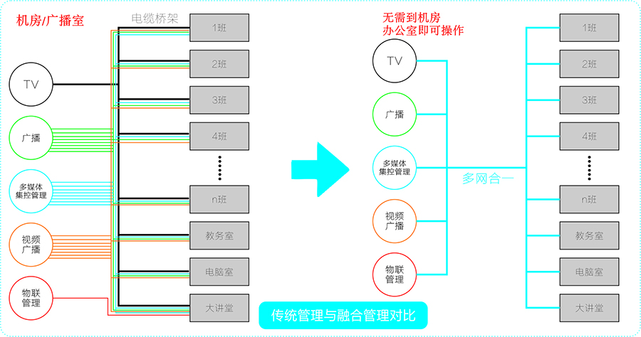 设备集控管理、校园数字广播、校园高清视频直转播系统、校园高清信息发布系统、无线物联集控管理、能耗监控与统计
